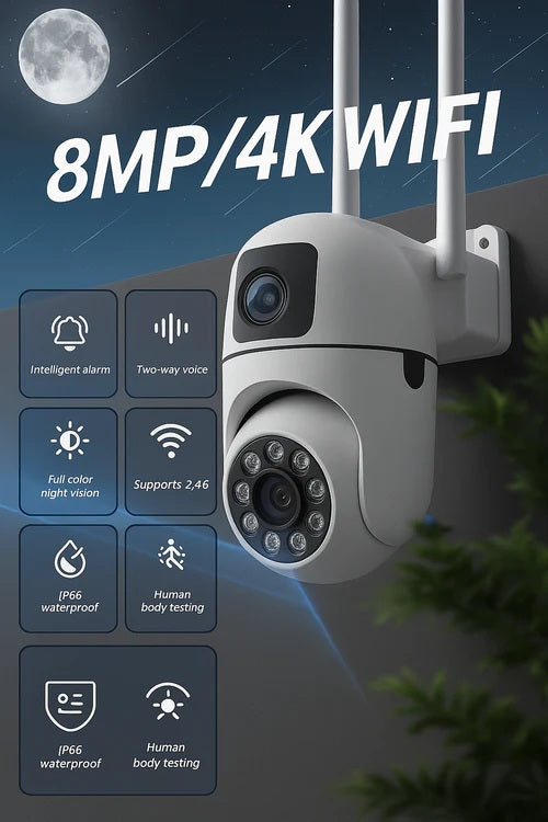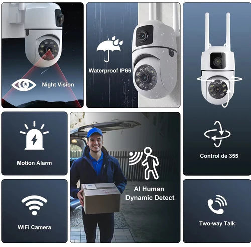 - Dual Lens 2-in-1 Camera: Combines PTZ smart camera (Pan-Tilt-Zoom) and Bullet camera features in a single, compact unit, offering versatile monitoring with dynamic surveillance options.